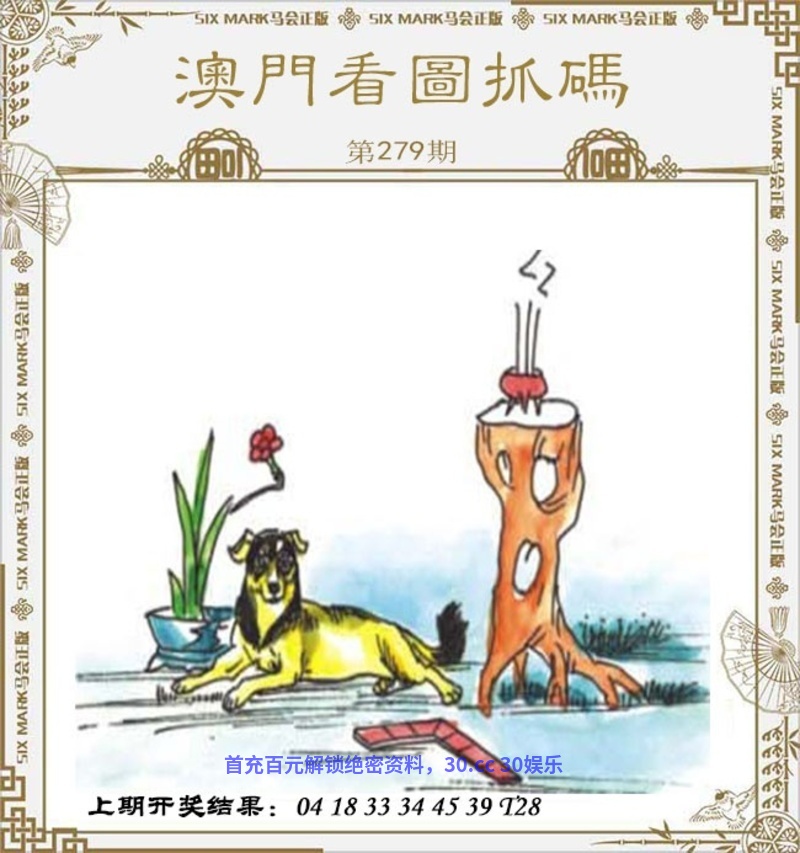 278期:开奖结果:04-18-33-34-45-39特:虎28准